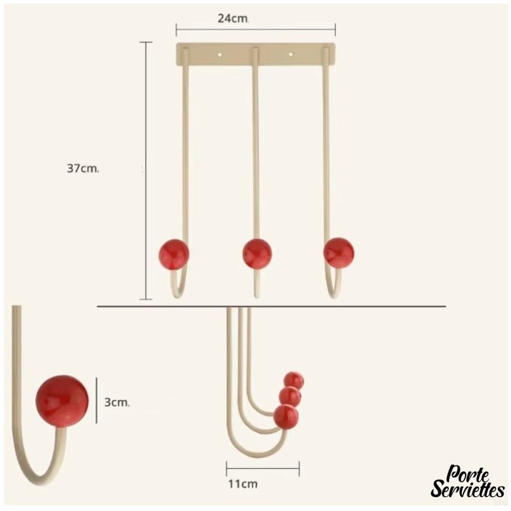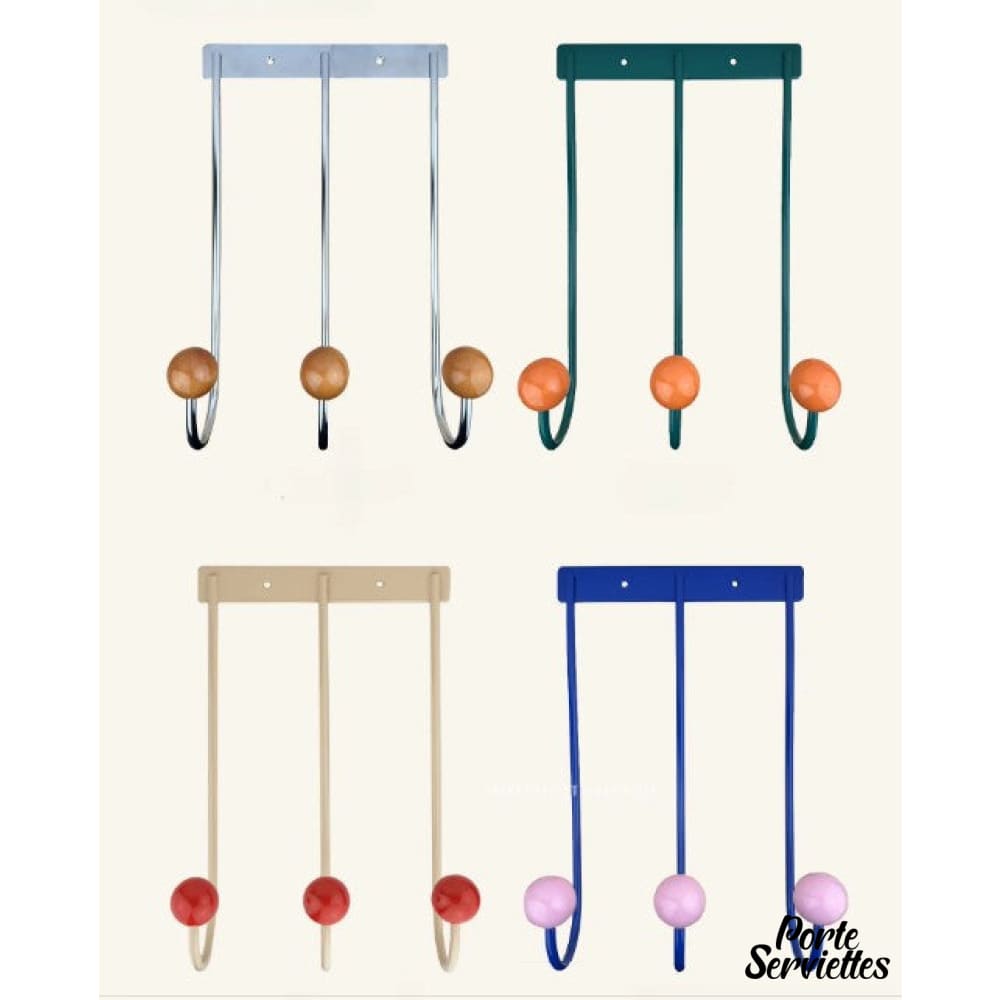 - Design ludique et coloré : crochets en métal courbé, surmontés de boules en résine brillante.