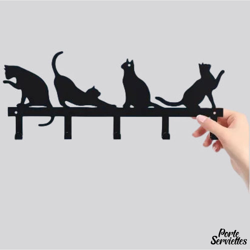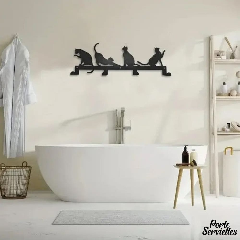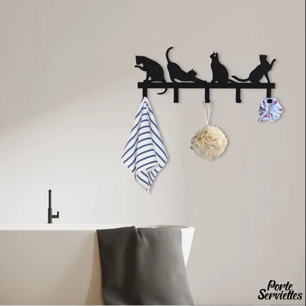 - Porte-serviettes mural décoratif en forme de 4 silhouettes de chats.