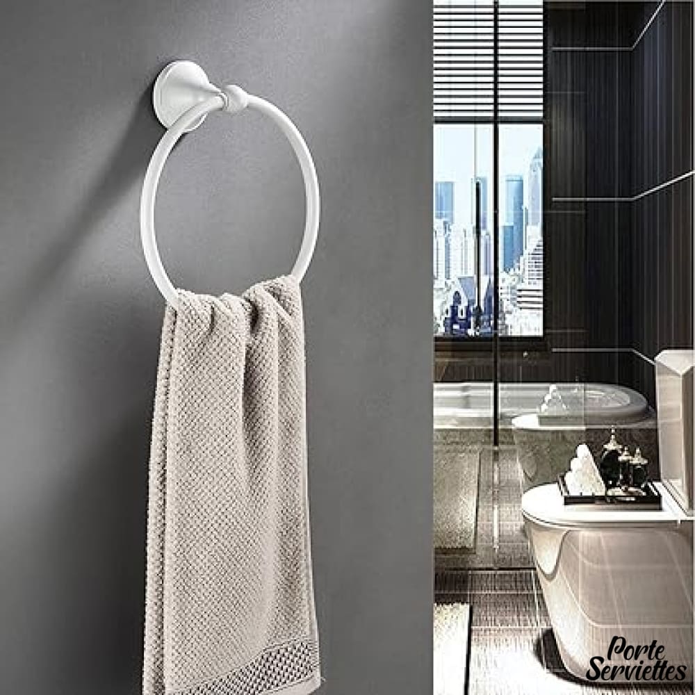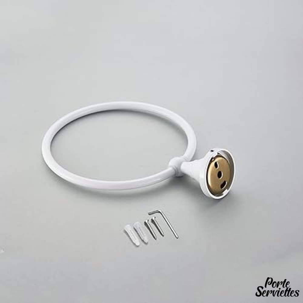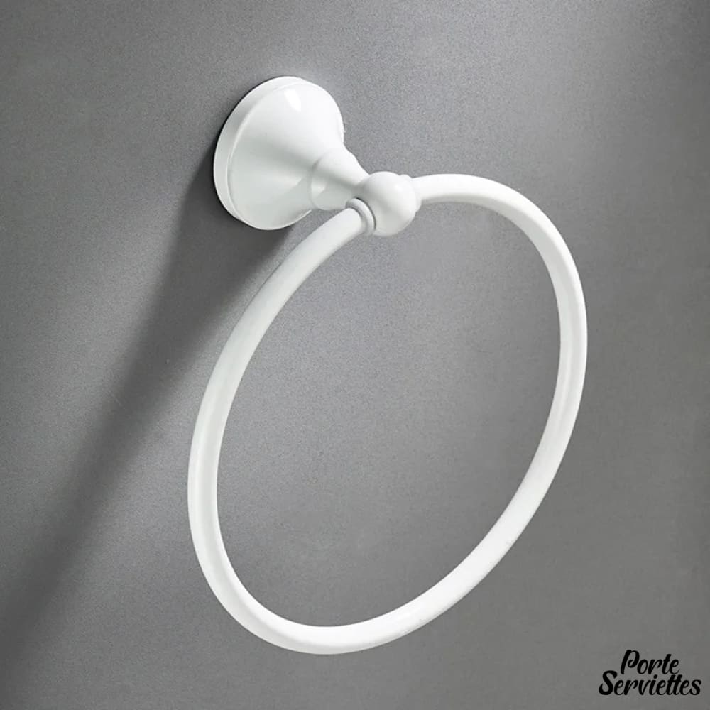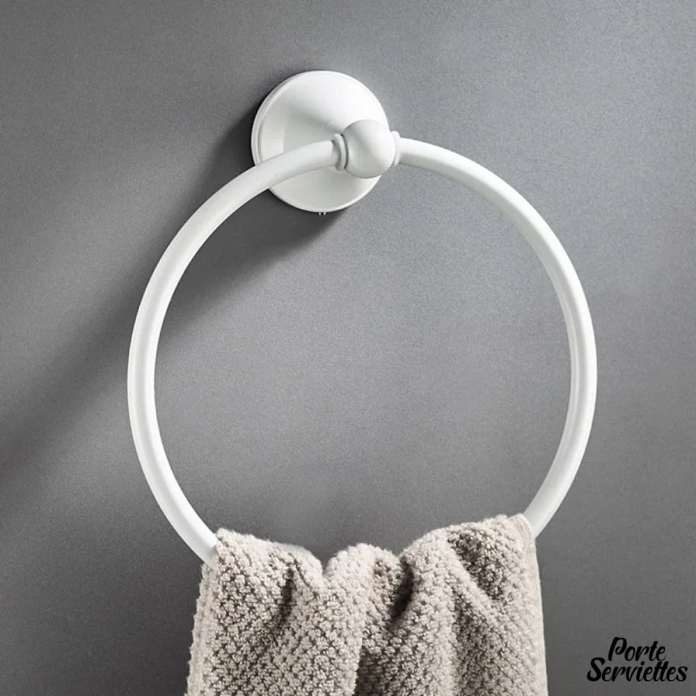 Porte-serviette rond – Un anneau blanc discret pour votre salle de bain.