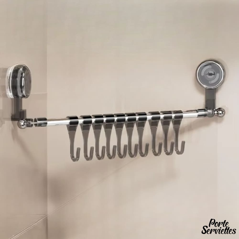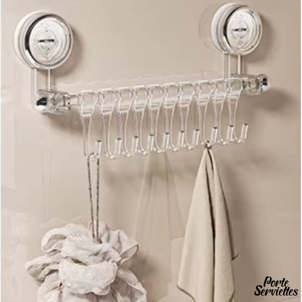 Porte-serviette ventouse de salle de bain – 10 crochets transparents pour une organisation discrète.