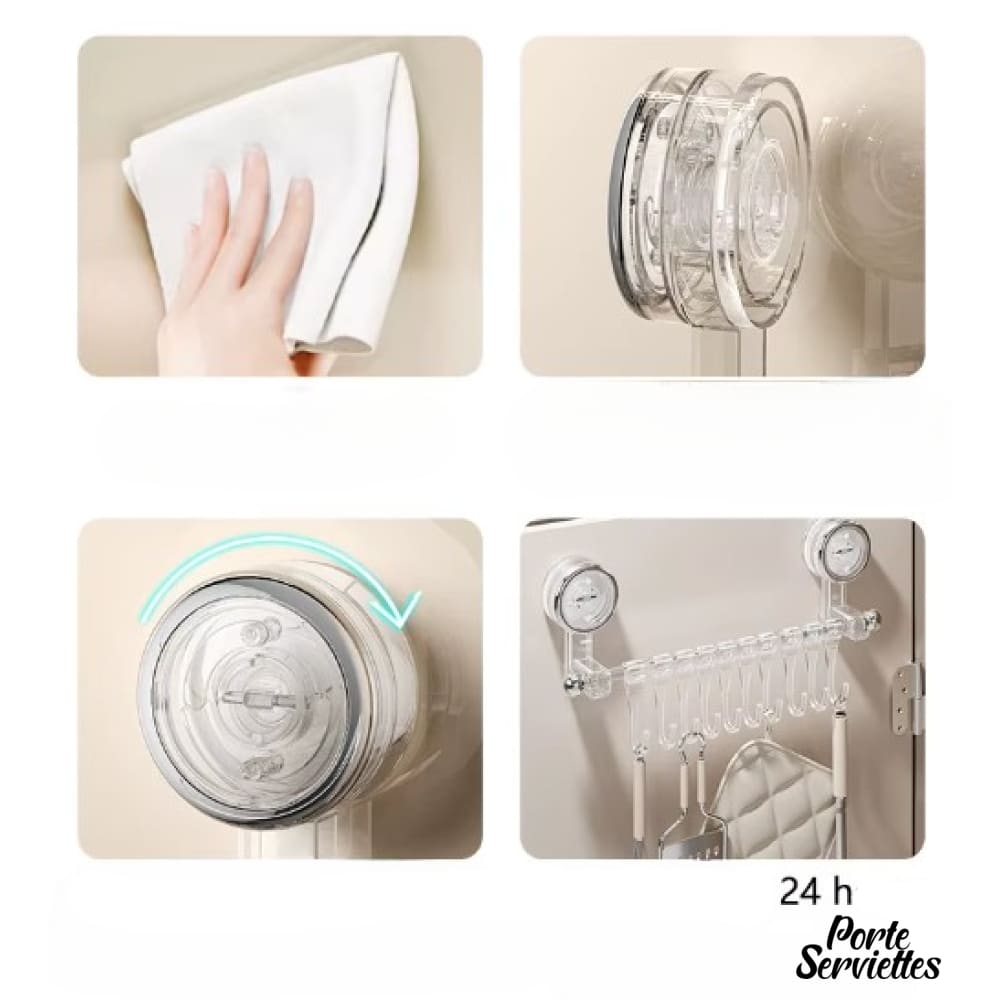 Les ventouses en ABS transparent, discrètes et élégantes, se fondent harmonieusement dans le décor, laissant toute la place aux serviettes et accessoires suspendus.