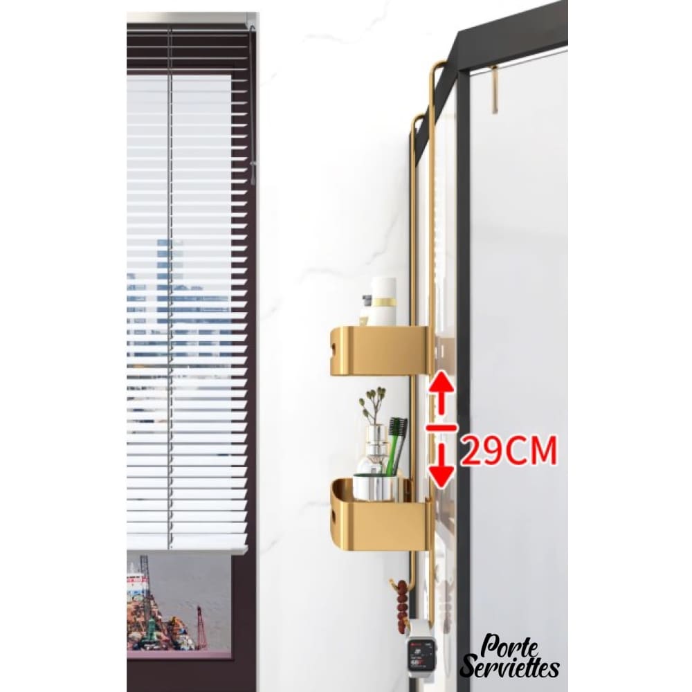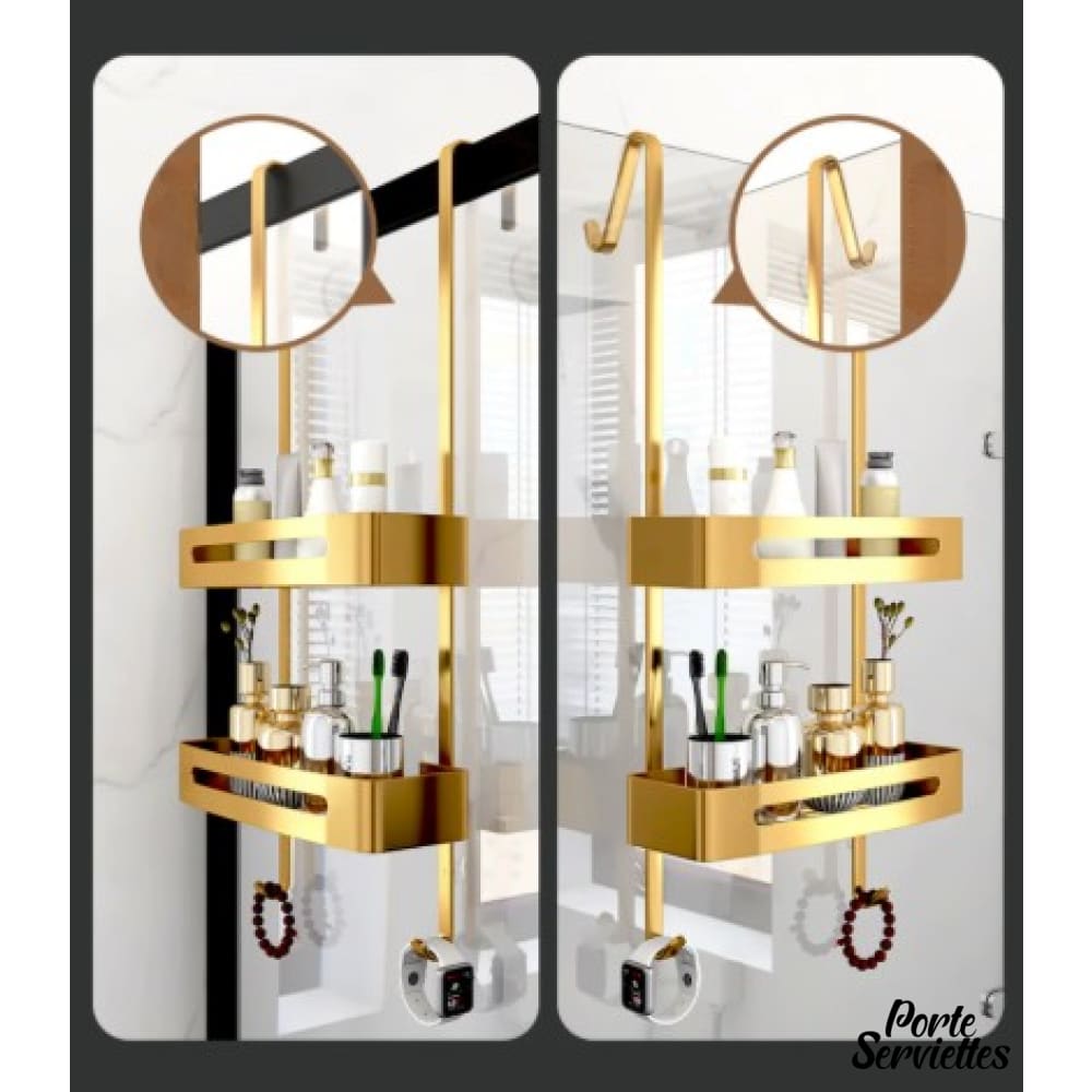 - 2 étagères en aluminium doré pour ranger serviettes, produits de toilette et accessoires