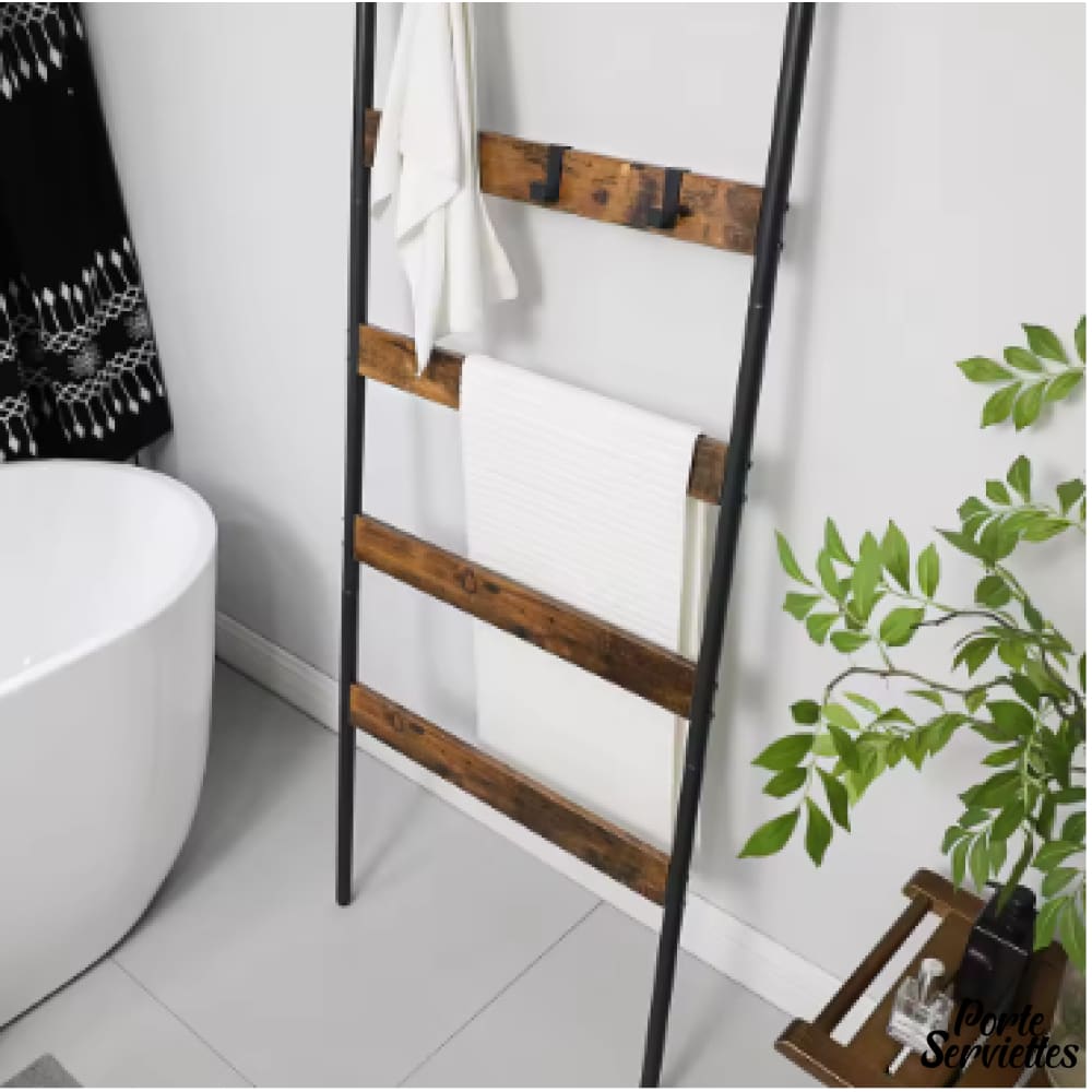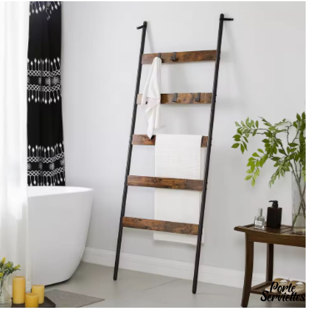 Échelle porte serviette noir – Un rangement mural à la fois pratique et esthétique.