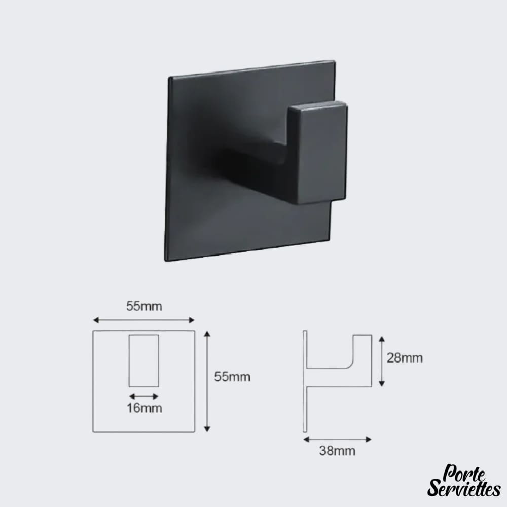 Crochet porte-serviette –Fixation adhésive en aluminium noir ou gris.