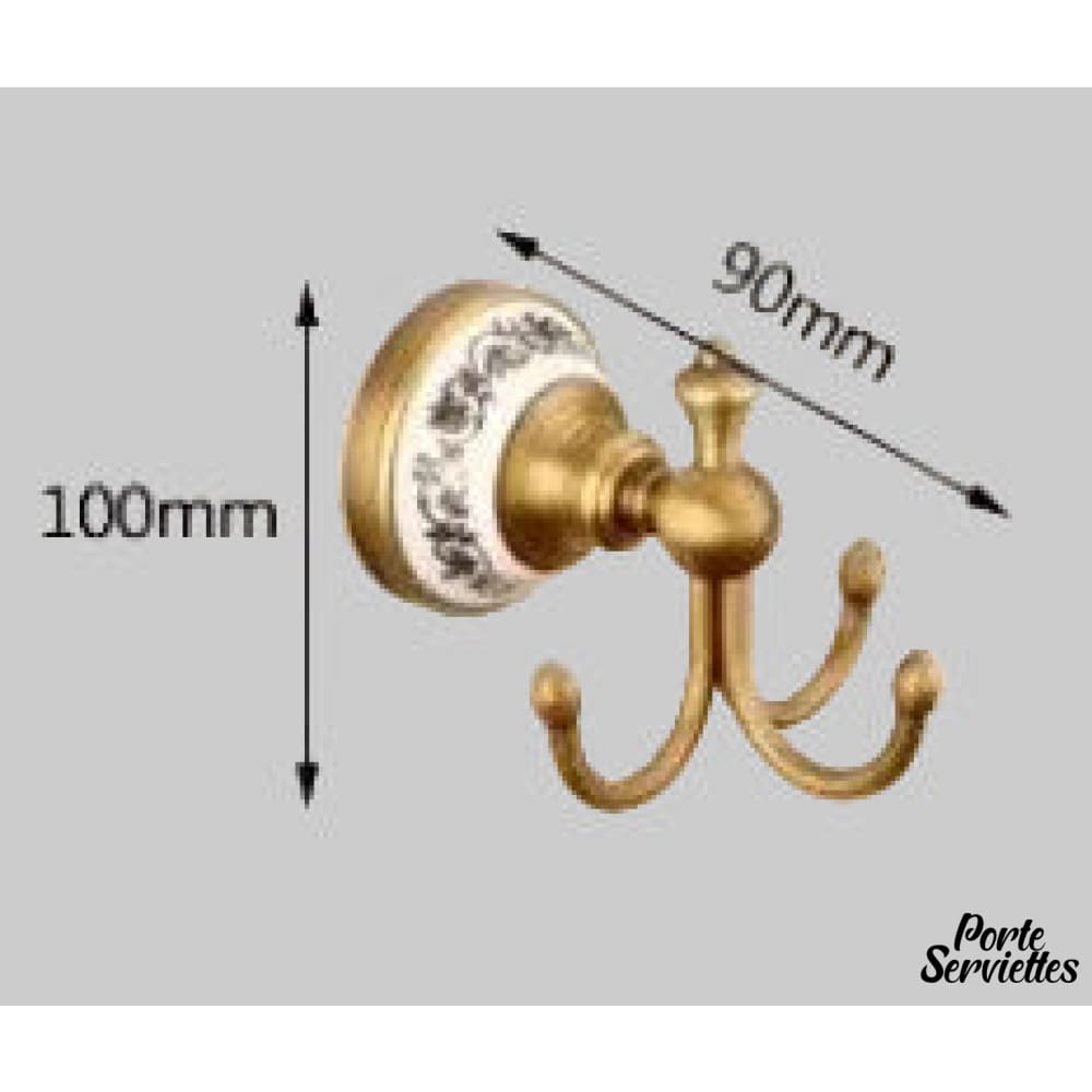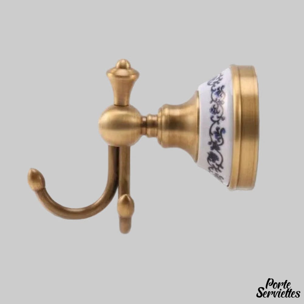 Ce crochet triple marie l’élégance du laiton doré et la délicatesse de la céramique décorée, créant un contraste visuel qui rappelle les intérieurs d’autrefois.