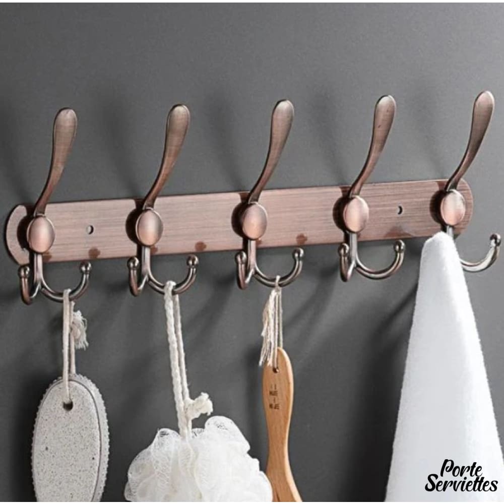 Porte-serviette 5 patères – l’accessoire vintage qui organise avec style votre salle de bain.