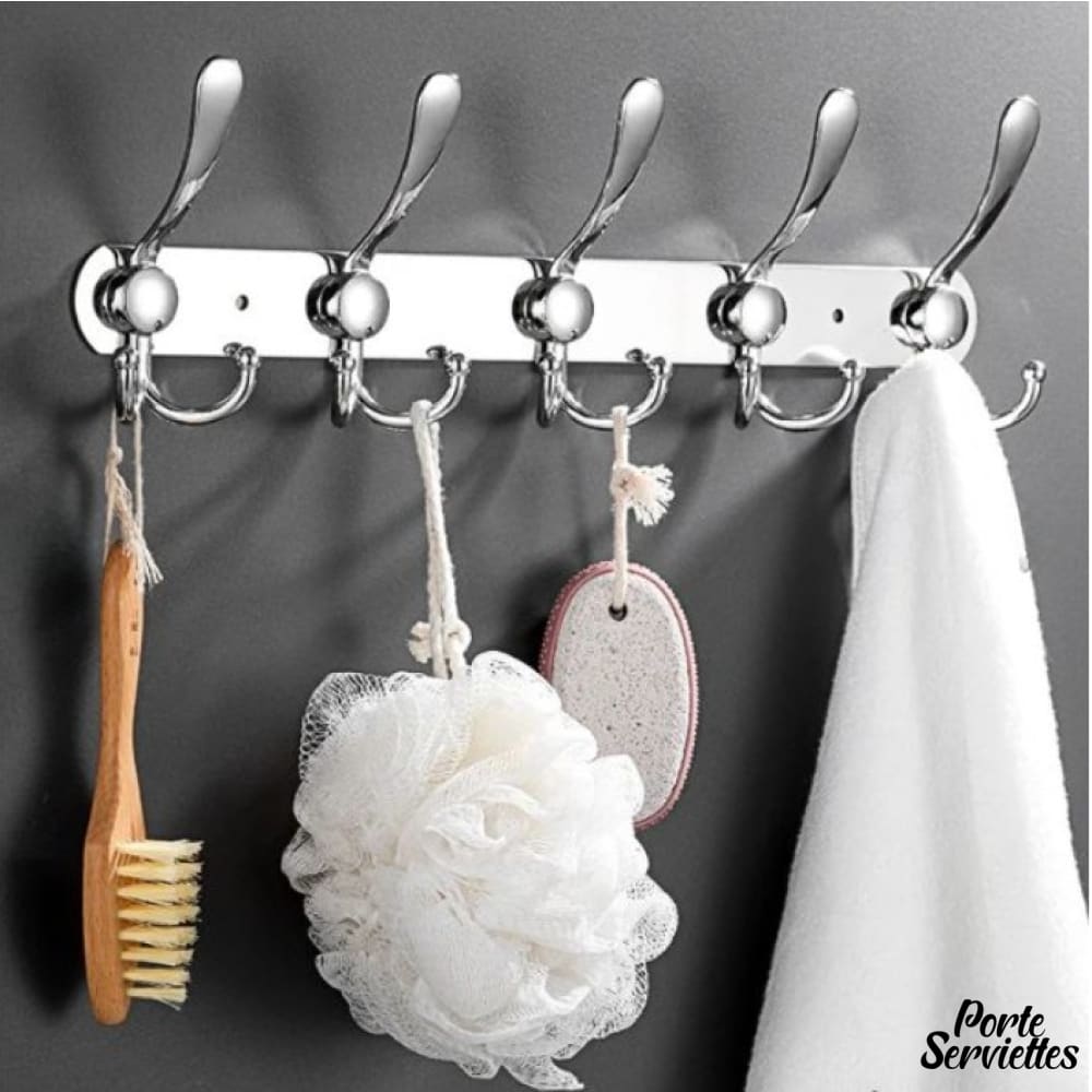 Ses crochets doubles permettent de suspendre serviettes, accessoires de toilette ou même peignoir, tout en optimisant l’espace.