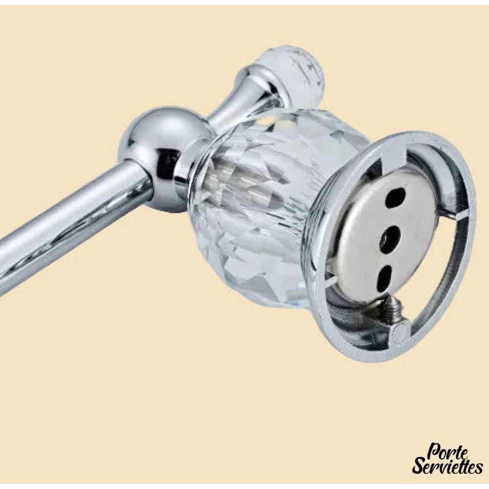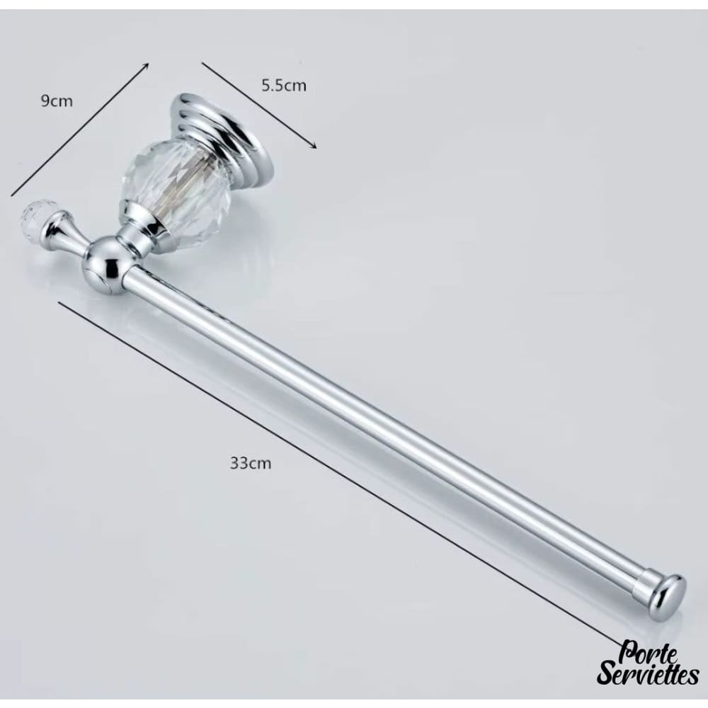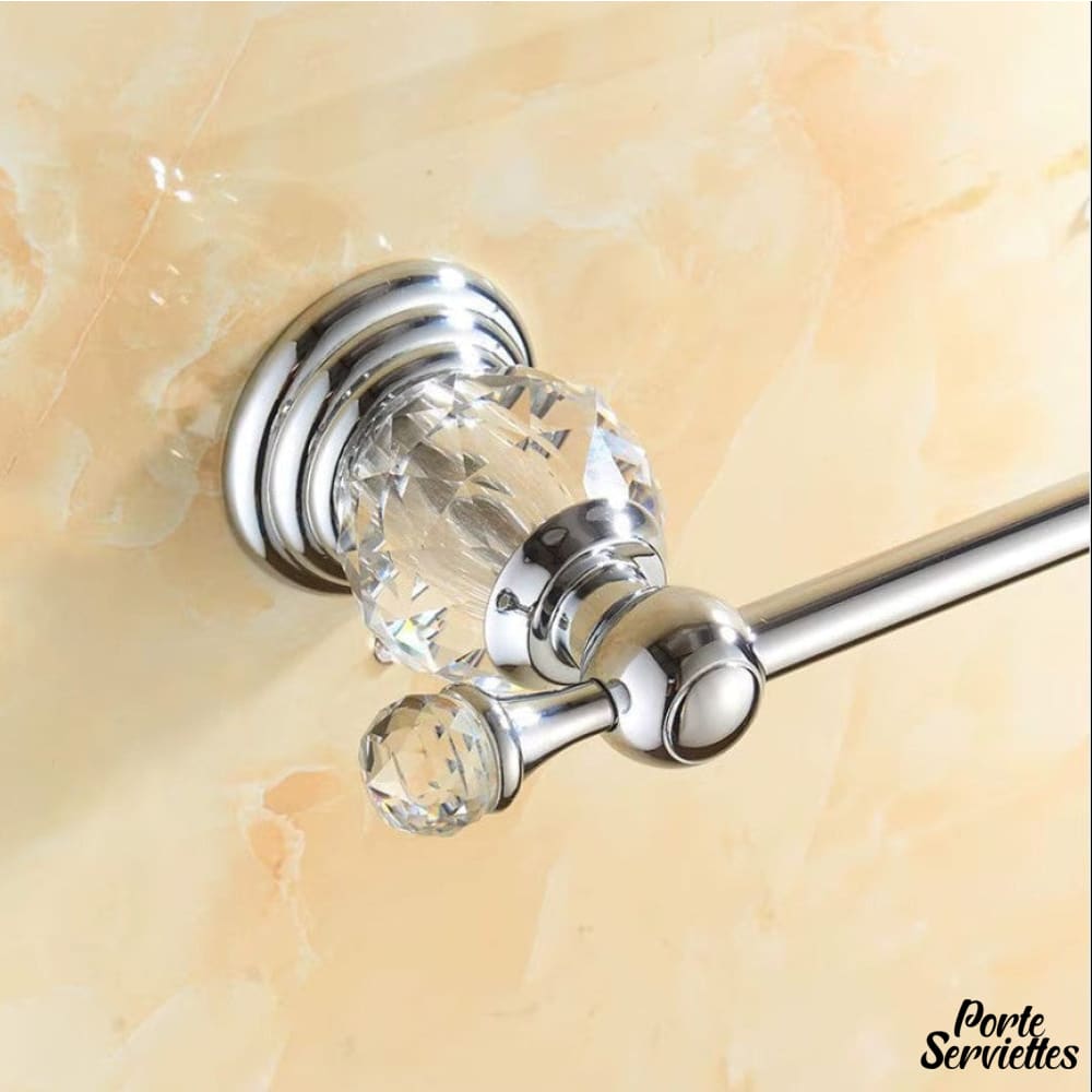 Cette barre porte-serviettes se distingue par sa ligne droite et Ă©lancĂ©e, soulignĂ©e par des embouts en cristal qui ajoutent une dimension luxueuse.Â
