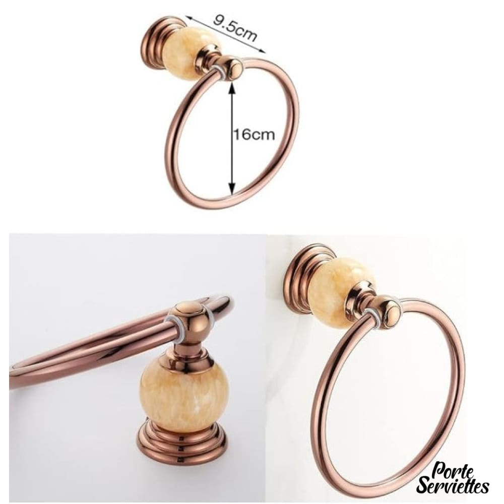 Un anneau au design raffiné qui allie cuivre rose et pierre naturelle pour sublimer votre salle de bain.