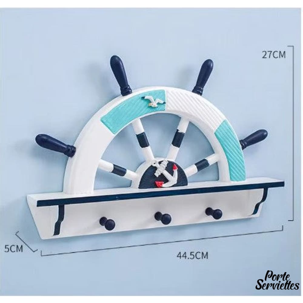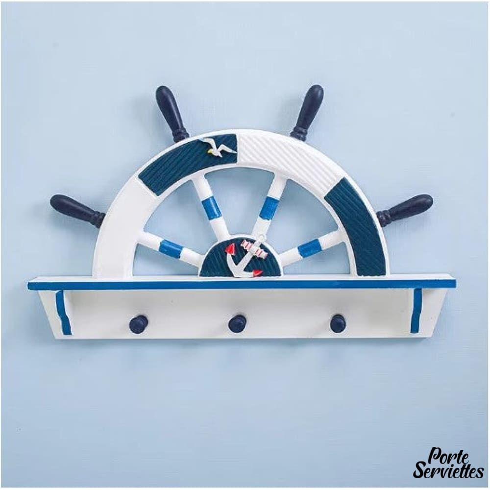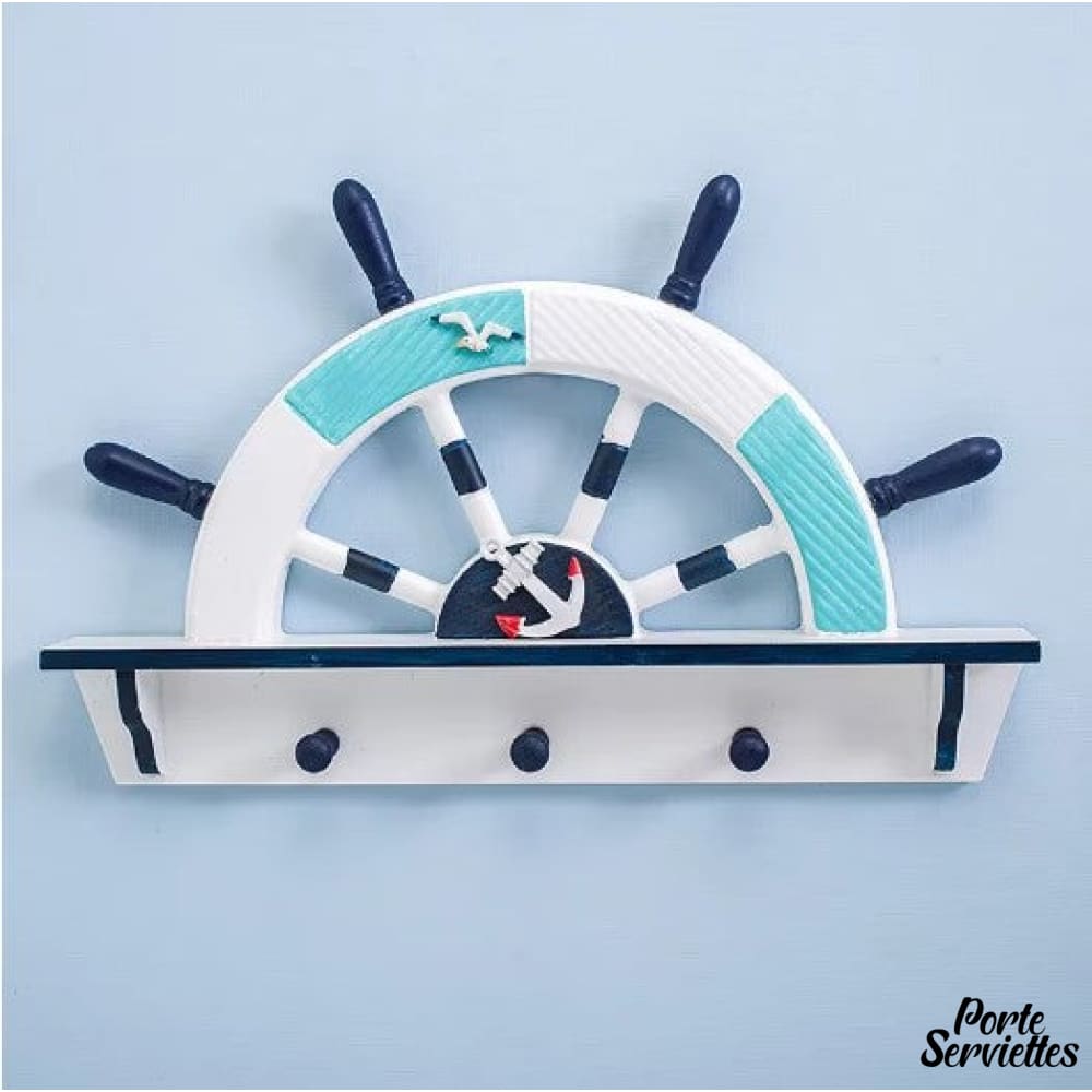 Cette collection transforme votre salle de bain en un espace inspiré par l'univers marin. Ce porte-serviettes mural, en forme de gouvernail de bateau, est fabriqué en bois moyen et comprend une étagÚre et trois crochets.