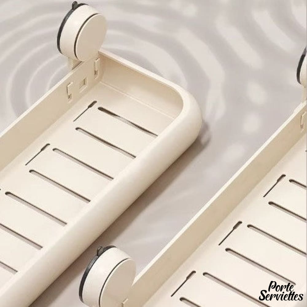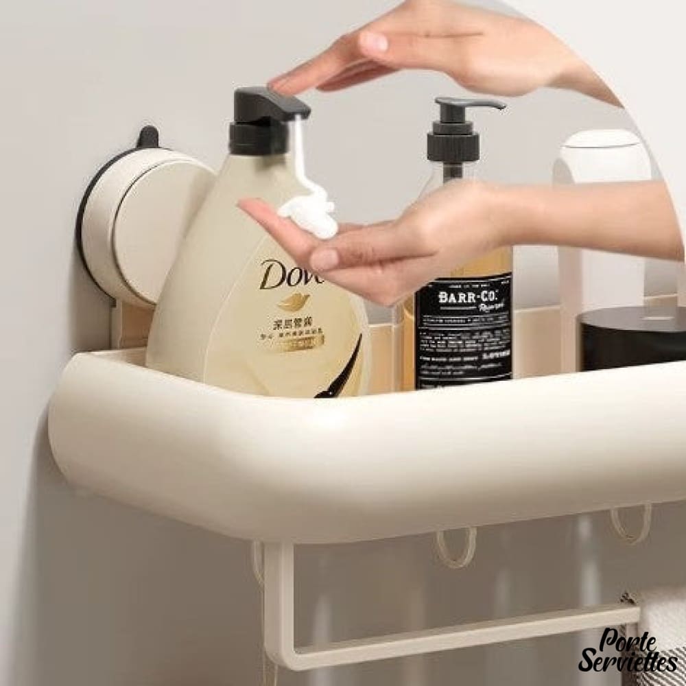 Le plateau incurvé et les crochets intégrés permettent de ranger vos produits tout en gardant serviettes et accessoires à portée de main.