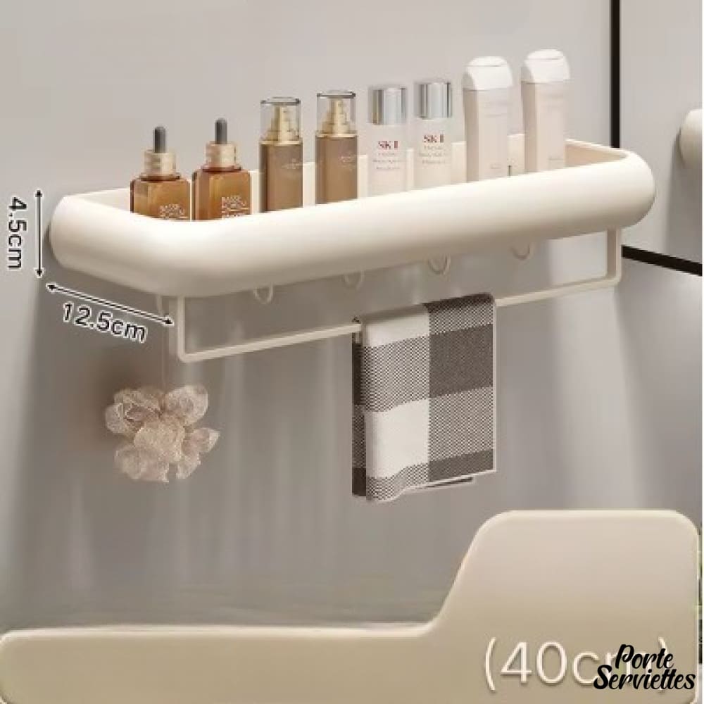 Porte-serviette mural avec tablette – Optimise l’espace pour votre salle de bain.