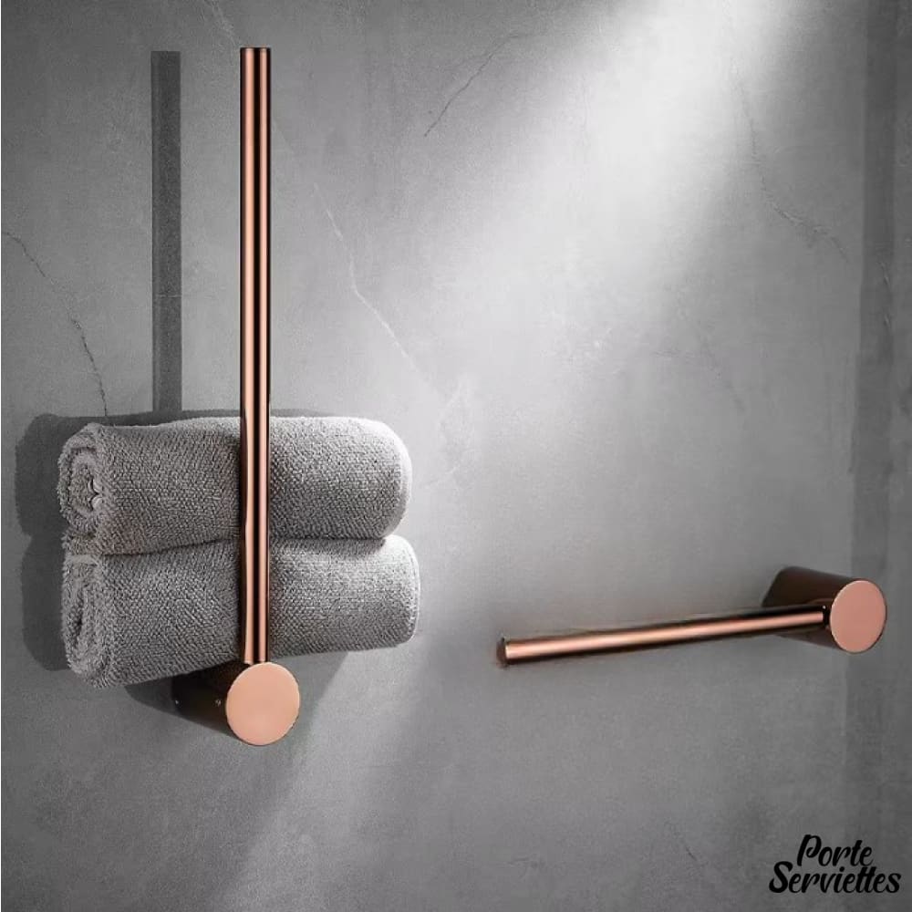 Ce porte-serviettes en laiton doré rose apporte une touche de modernité et de luxe à votre salle de bain.