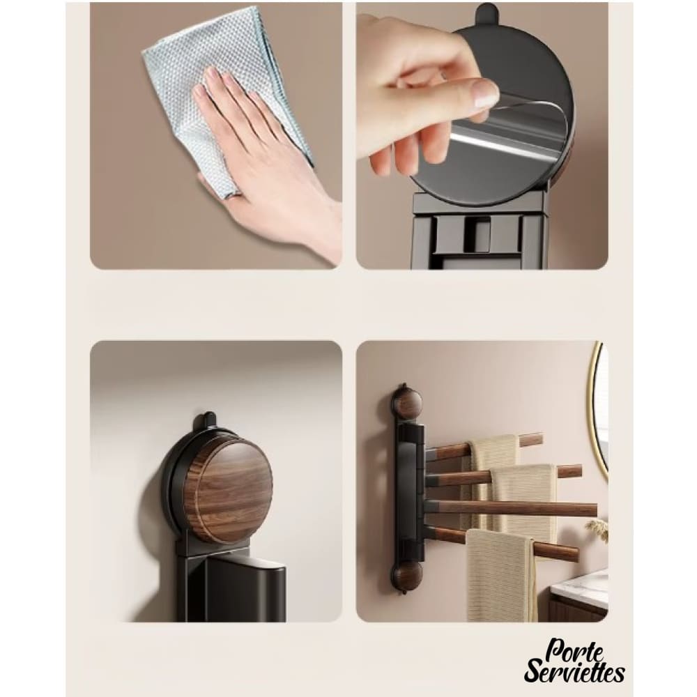 Porte-serviette de salle de bain en bois â Bras pivotants Ă ventouses.