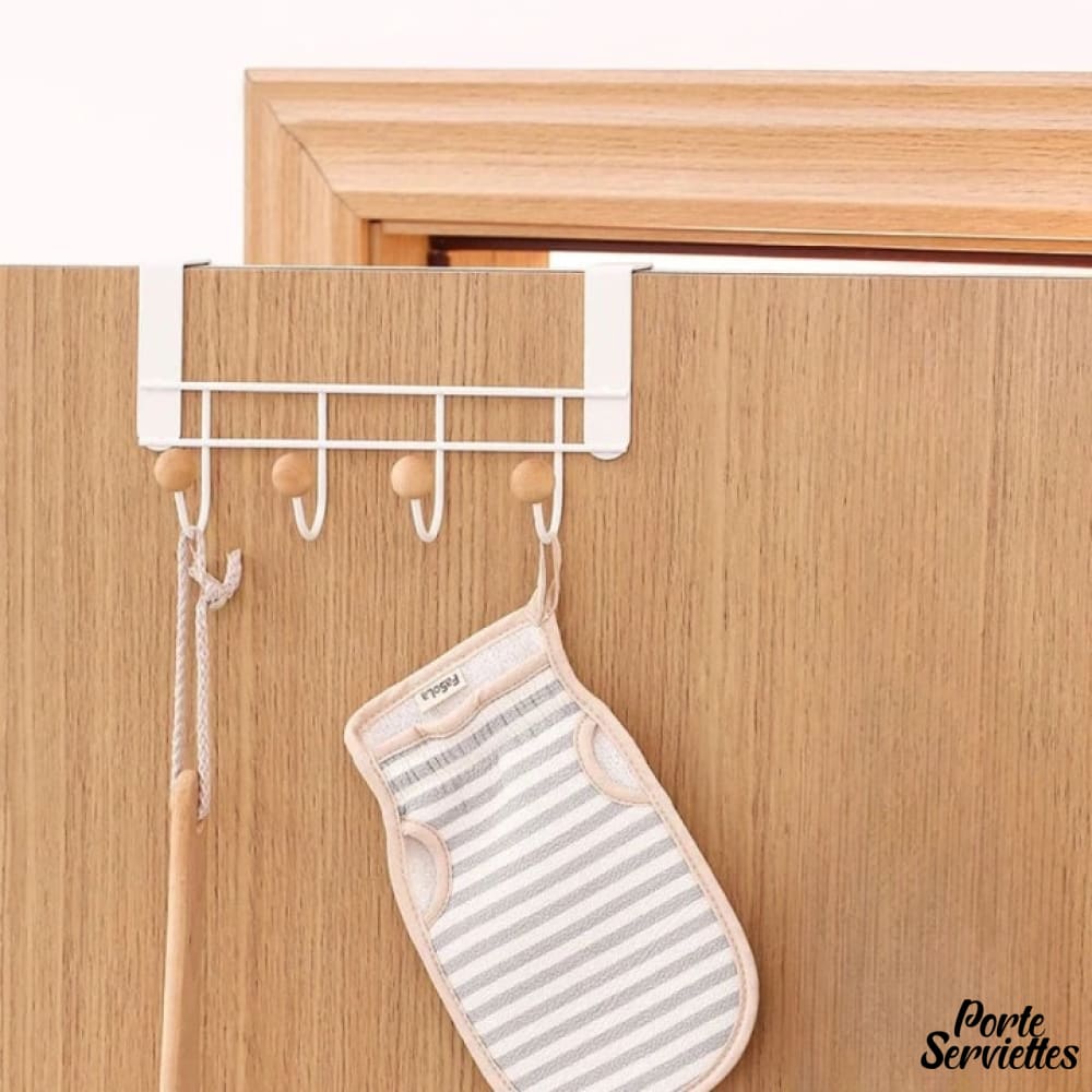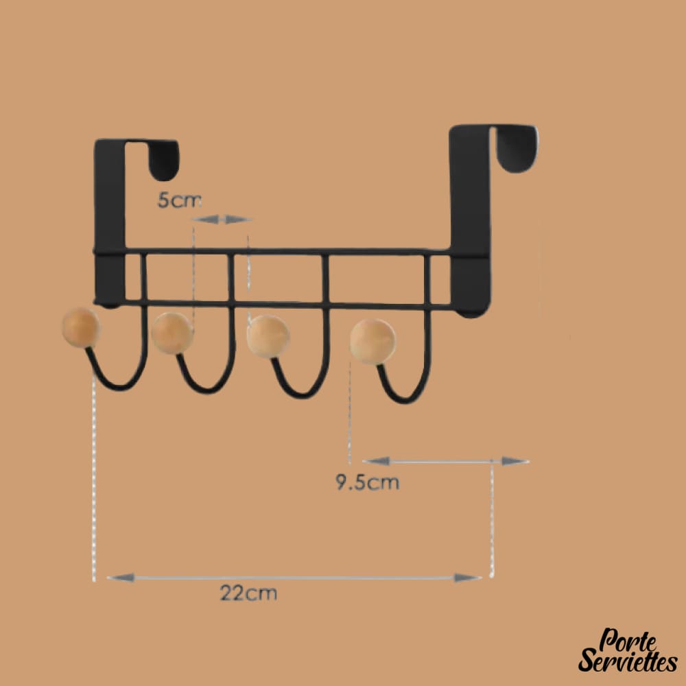 - 4 crochets avec embouts en bois pour suspendre serviettes ou peignoirs.