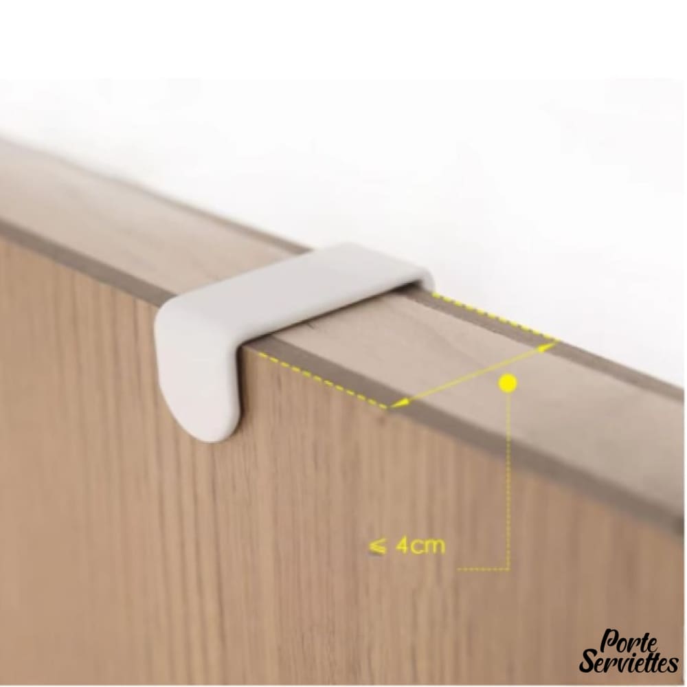 - Fixation : Se clipse directement sur le haut des portes (épaisseur maximale de 4 cm).